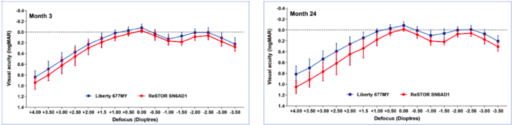 Los datos reunidos por el Prof. Nagy en su estudio de dos años demostraron la predictibilidad y estabilidad refractiva en pacientes en los que se implantó el LIO Liberty, así como un cambio hacia valores negativos en el grupo de ojos en los que se implantó el LIO AcrySof IQ ReSTOR.