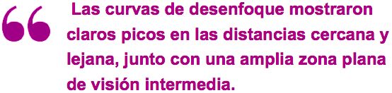 “Las curvas de desenfoque mostraron claros picos en las distancias cercana y lejana, junto con una amplia zona plana de visión intermedia (Fig.12). La curva de desenfoque fue similar a la observada con el LIO trifocal Liberty”, señala el Prof. Srinivasan.