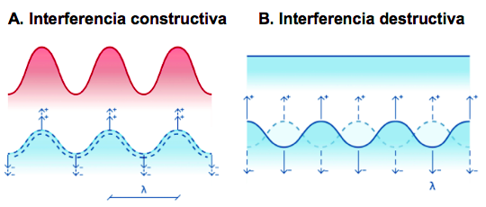 Estas ondas pueden reforzarse (Fig. 1a), lo que se conoce como interferencia constructiva, o anularse, lo que se conoce como interferencia destructiva. (Fig. 1b)
